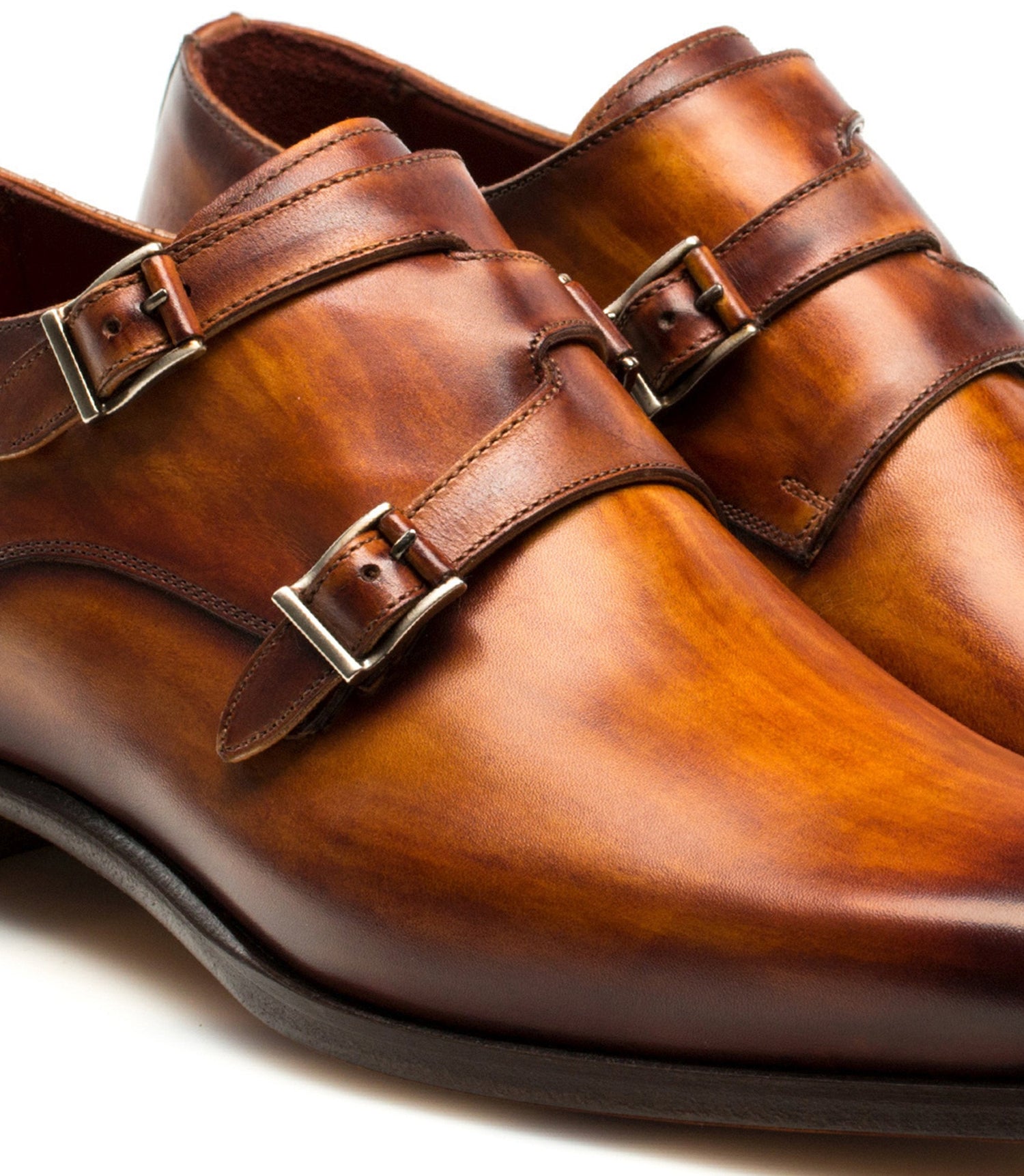 Flat Feet Shoes - Brown Leather Leminst Monk Strap Shoes with Arch Support
